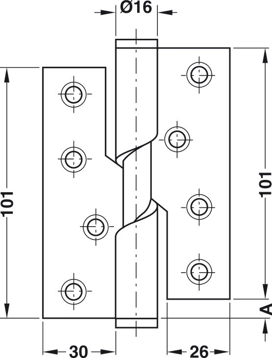 Drill-in hinge, for flush mounting, size 102 mm