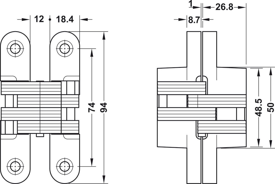 Door hinge, concealed, for flush interior doors up to 45 kg, Startec