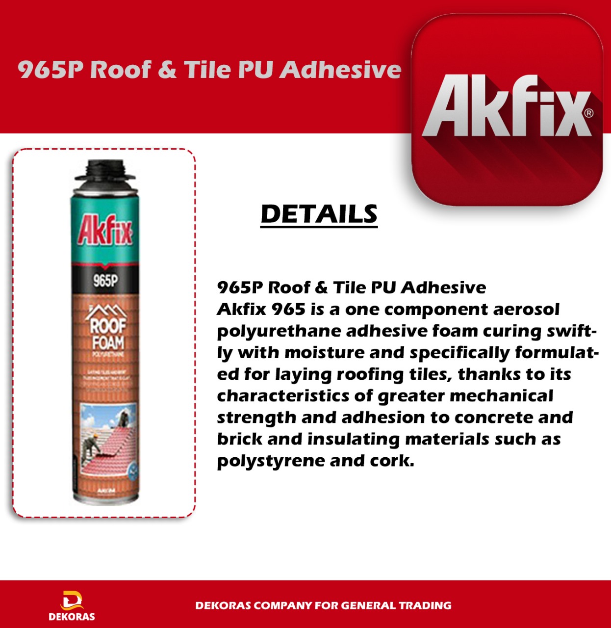 Akfix Fast 55 Combo Pu Foam is a single-component PU foam can be used both with an applicator gun and straw at the same time. Cures swiftly with moisture. Features high volumetric yield, reusability, fast curing and easy application. It does not contain any propellant gases which are harmful to the ozone layer.